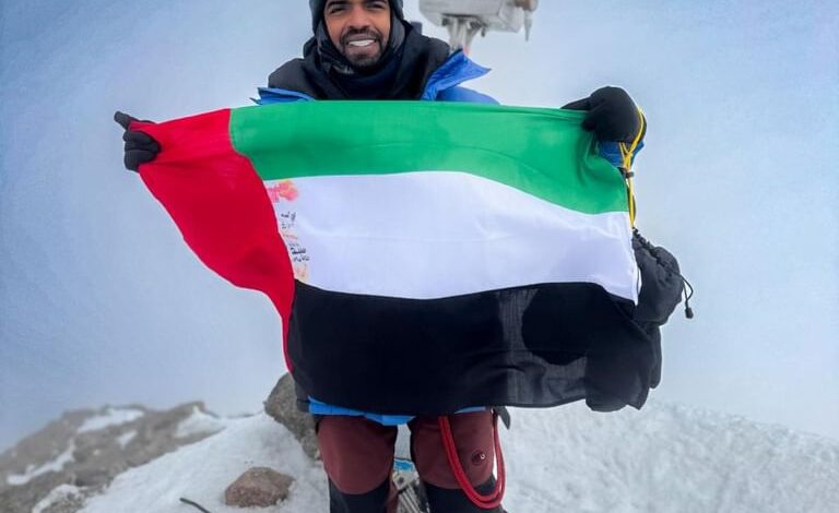 راشد الشامسي يرفع علم الإمارات على أعلى قمة في أوروبا