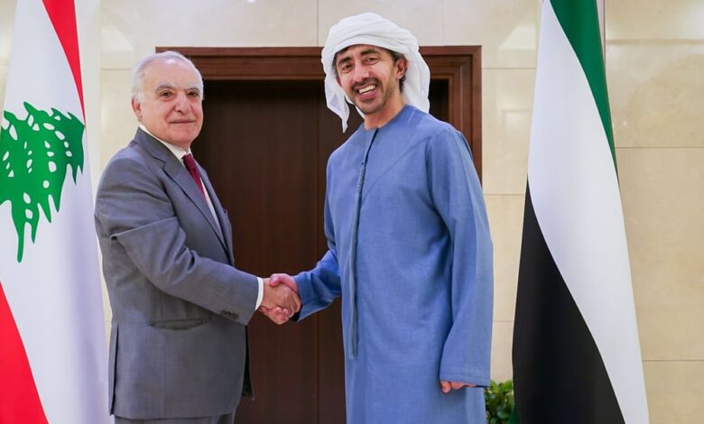 وتطرق اللقاء إلى مجمل التطورات الإقليمية والمستجدات على الساحة اللبنانية، وأعرب سمو الشيخ عبدالله بن زايد آل نهيان عن تمنياته للجمهورية اللبنانية الشقيقة وشعبها دوام الاستقرار والازدهار، مشيداً بالعلاقات الأخوية بين البلدين.