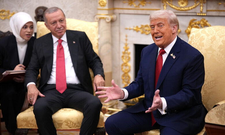 وخلال لقاء بين ترامب وأردوغان في المكتب البيضاوي بحضور عشرات الصحفيين، تحدث ترامب عن دعم الرئيس التركي لقوات المعارضة في سوريا بقيادة الرئيس أحمد الشرع الذي أعاد تشكيل البلاد ومسارها، وقال: “إنهم وكلاؤكم. أعتقد أنه يجب أن تنالوا الفضل في ذلك”.