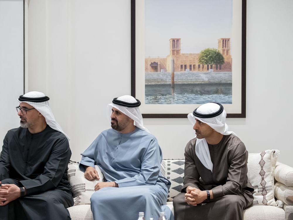 حضر اللقاء .. سمو الشيخ خالد بن محمد بن زايد آل نهيان ولي عهد أبوظبي وسمو الشيخ طحنون بن زايد آل نهيان نائب حاكم إمارة أبوظبي مستشار الأمن الوطني وسمو الشيخ ذياب بن محمد بن زايد آل نهيان نائب رئيس ديوان الرئاسة للشؤون التنموية وأسر الشهداء وسمو الشيخ حمدان بن محمد بن زايد آل نهيان نائب رئيس ديوان الرئاسة للشؤون الخاصة ومعالي الشيخ محمد بن حمد بن طحنون آل نهيان مستشار رئيس الدولة ومعالي الدكتور أحمد مبارك المزروعي رئيس مكتب رئيس الدولة للشؤون الإستراتيجية رئيس مكتب أبوظبي التنفيذي ومعالي منصور إبراهيم المنصوري رئيس دائرة الصحة – أبوظبي و معالي أحمد تميم الكتاب رئيس دائرة التمكين الحكومي – أبوظبي وعدد من كبار المسؤولين.