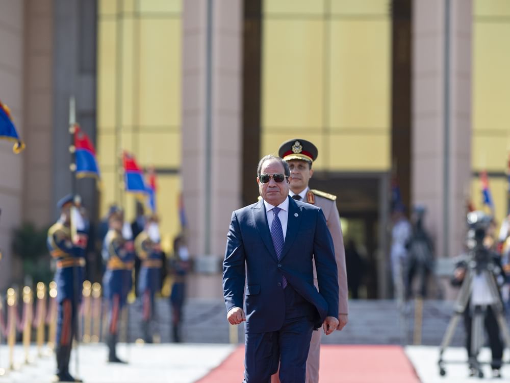 وكان في مقدمة مستقبلي سموه، لدى وصوله والوفد المرافق مطار القاهرة الدولي، فخامة عبدالفتاح السيسي رئيس جمهورية مصر العربية.