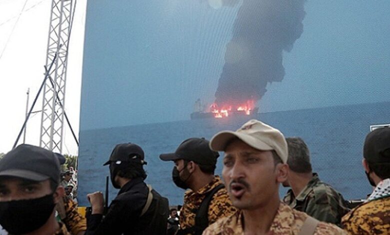 وأفاد بيان البحرية أن النار اشتعلت في السفينة في خليج عدن قبالة سواحل اليمن بعد إصابتها بقذيفة