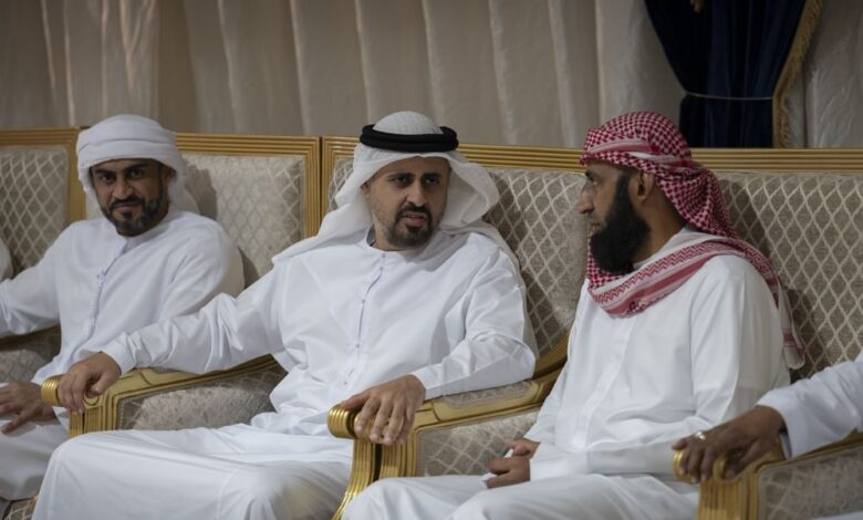 ذياب بن محمد بن زايد يقدم واجب العزاء في وفاة والد الشهيد علي حسن الشحي