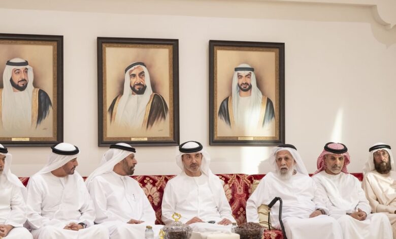 هزاع بن زايد يقدم واجب العزاء في وفاة سيف راشد النايلي ومحمد فالح الشامسي
