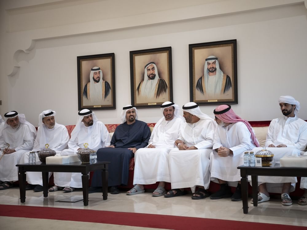 ذياب بن محمد بن زايد يقدِّم واجب العزاء في وفاة سيف راشد النايلي ومحمد فالح الشامسي