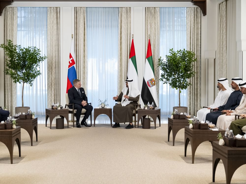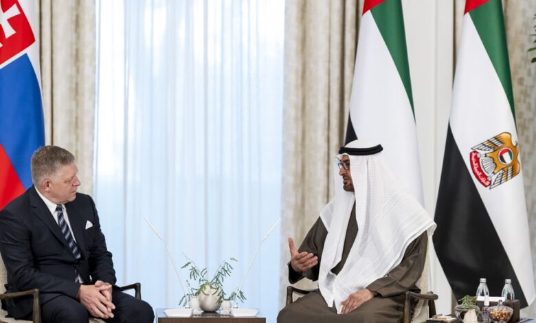 بحث صاحب السمو الشيخ محمد بن زايد آل نهيان رئيس الدولة “حفظه الله” ومعالي روبرت فيكو رئيس وزراء جمهورية سلوفاكيا، علاقات التعاون وفرص تطويرها خاصة في المجالات التنموية والاقتصادية والتجارية والطاقة المتجددة والابتكار وتكنولوجيا المستقبل بجانب المجالات الثقافية وغيرها من الجوانب بما يخدم مصالح البلدين ورؤيتهما تجاه تحقيق التنمية المستدامة ويعود بالخير والنماء على شعبيهما.
