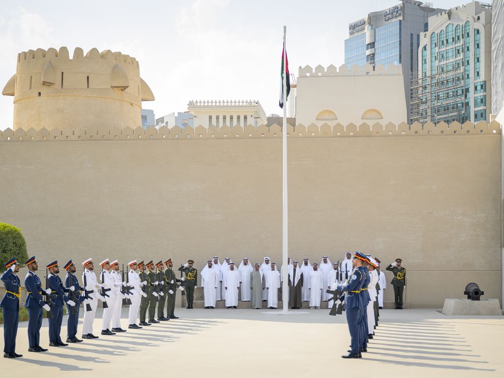 ورافق مراسم رفع العلم، عزف السلام الوطني لدولة الإمارات، بمشاركة مجموعة من أبناء الوطن من الضباط المتقاعدين، تعبيراً عن تقدير الدولة لأبنائها الذين أسهموا في مختلف مراحل تطورها ونهضتها، ووفاءً وعرفاناً لمسيرة عطائهم وما قدموه على مدى عقود في سبيل رفعةً الوطن وصون أمنه والحفاظ على مكتسباته ليبقى عزيزاً شامخاً.