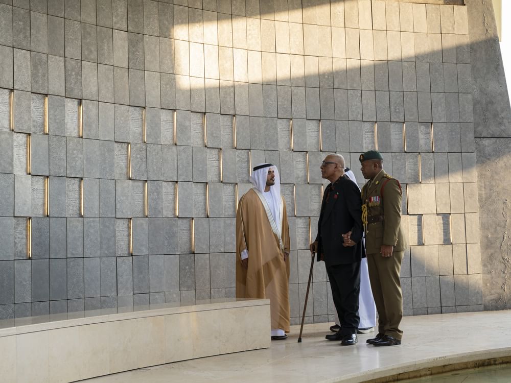 واستمع فخامة راتو نايكاما لالابالافو إلى شرحٍ عن واحة الكرامة ومرافقها التي ترمز إلى بطولات أبناء دولة الإمارات البواسل وتضحياتهم في سبيل الدفاع عن الوطن وحماية مكتسباته ومنجزاته.