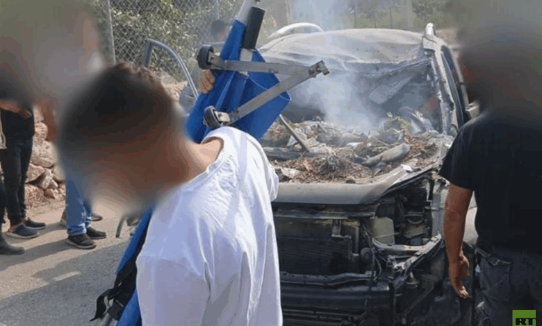 وأظهرت الصور، السيارة المستهدفة وقد احترقت وتناثرت أجزاؤها.