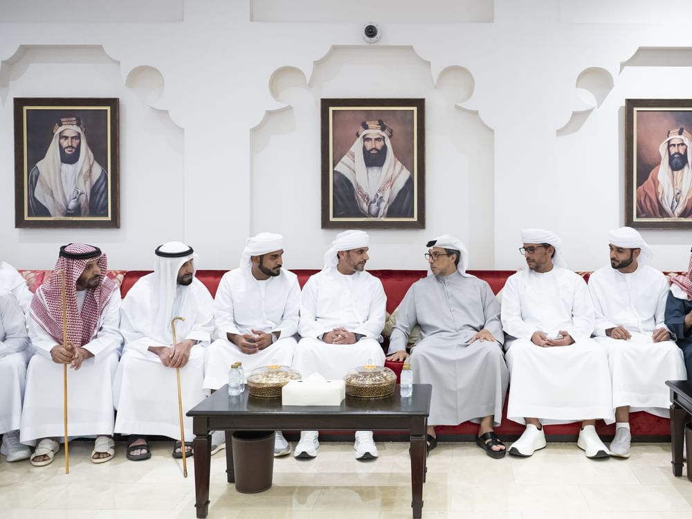 قدم سمو الشيخ منصور بن زايد آل نهيان، نائب رئيس الدولة، نائب رئيس مجلس الوزراء، رئيس ديوان الرئاسة، اليوم، العزاء في وفاة المغفور له معتوق حربي بن ثنيه العامري.