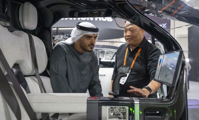 واطّلع سموّه خلال جولته في أروقة المعرض على أحدث الابتكارات والتقنيات في مجالات التنقّل الذكي والأنظمة ذاتية القيادة في وسائل النقل البرية والبحرية والجوية، التي تُقدِّمها مجموعة من الشركات المحلية والعالمية الرائدة، إلى جانب نماذج أولية لمركبات وطائرات مسيّرة تعتمد على تقنيات وحلول الذكاء الاصطناعي.