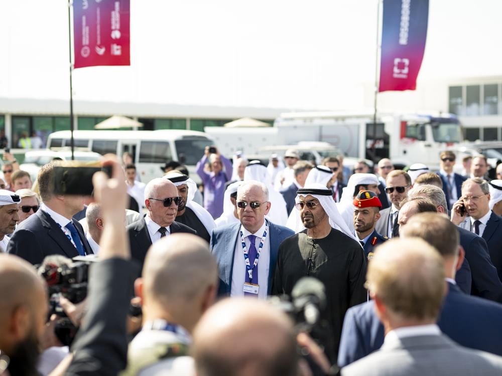 وأكد صاحب السمو رئيس الدولة أن معرض دبي للطيران يعد منصة عالمية يسهم في تعزيز الشراكات الدولية والتعاون البناء في قطاعات الطيران والفضاء والدفاع..بجانب ترسيخه مكانة دولة الإمارات وجهة لأبرز الأحداث والفعاليات الدولية التي تجمع رواد الابتكار والتقنيات المتقدمة التي من شأنها الإسهام في إيجاد فرص جديدة للنمو والتقدم.