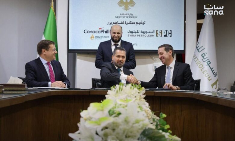 وقعت الشركة السورية للبترول (SPC) مذكرة تفاهم مع شركتي كونيكو فيليبس ونوفاتيرا الأمريكيتين، بهدف تطوير قطاع الغاز وزيادة الإنتاج من الحقول القائمة.