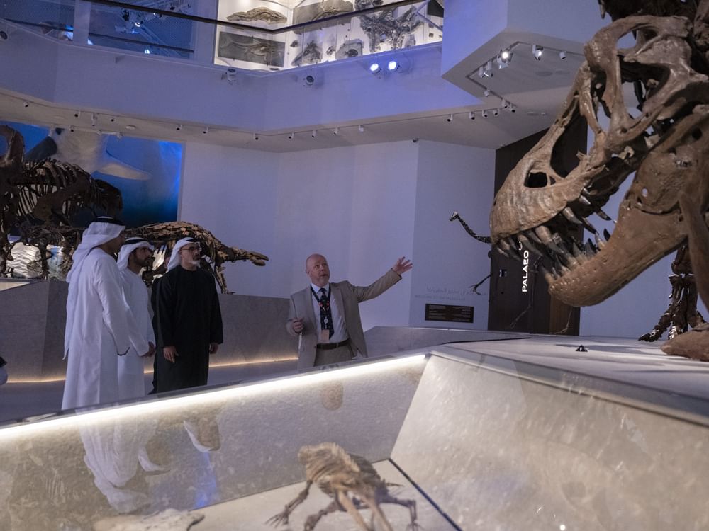 خالد بن محمد بن زايد وحمدان بن محمد بن راشد يقومان بجولة في متحف التاريخ الطبيعي أبوظبي بالمنطقة الثقافية في السعديات