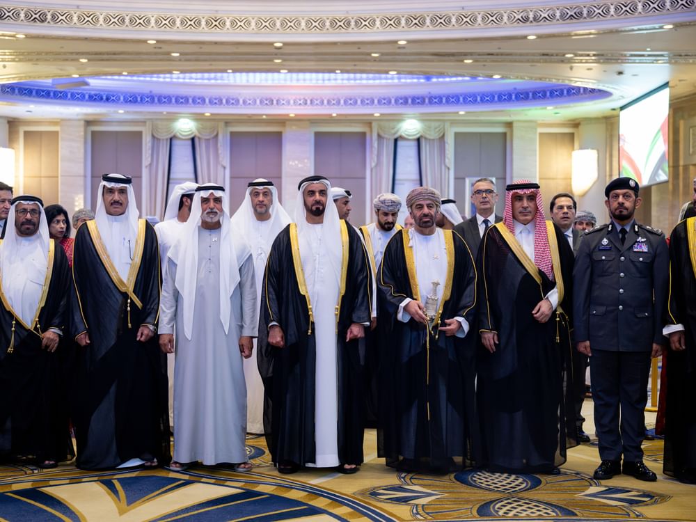 سيف بن زايد يحضر حفل السفارة العمانية بمناسبة اليوم الوطني الـ 55.