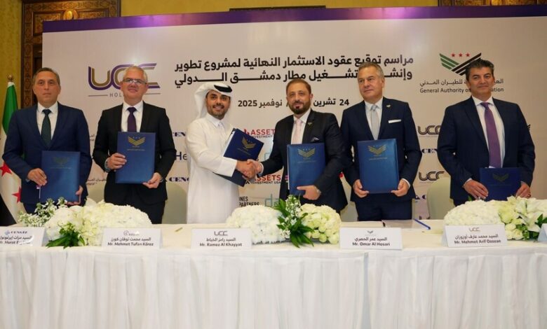 وقعت الهيئة العامة للطيران المدني السوري العقود النهائية للاستثمار في تطوير وإنشاء وتشغيل مطار دمشق مع ائتلاف دولي تقوده شركة “أورباكون” القابضة.