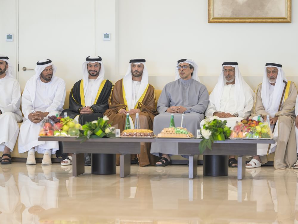 حضر سمو الشيخ منصور بن زايد آل نهيان، نائب رئيس الدولة، نائب رئيس مجلس الوزراء، رئيس ديوان الرئاسة، حفل الاستقبال الذي أقامه السيد حميد محمد بالعاجر الرميثي، بمناسبة زفاف نجله علي إلى كريمة السيد أحمد مطر محمد الرميثي، وذلك في مجلس السمحة بأبوظبي.