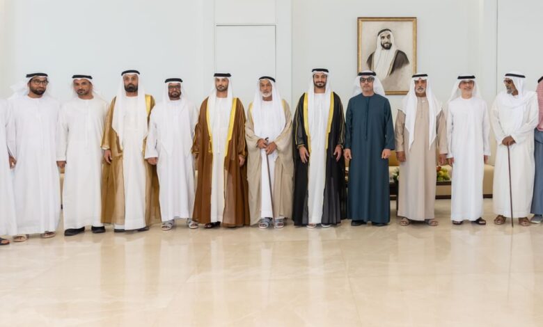 حضر سمو الشيخ هزاع بن زايد آل نهيان، ممثل الحاكم في منطقة العين، حفل استقبال أقامه اللواء الركن بحري حميد محمد بالعاجر الرميثي، قائد القوات البحرية، بمناسبة زفاف نجله “علي” إلى كريمة أحمد مطر محمد الرميثي.