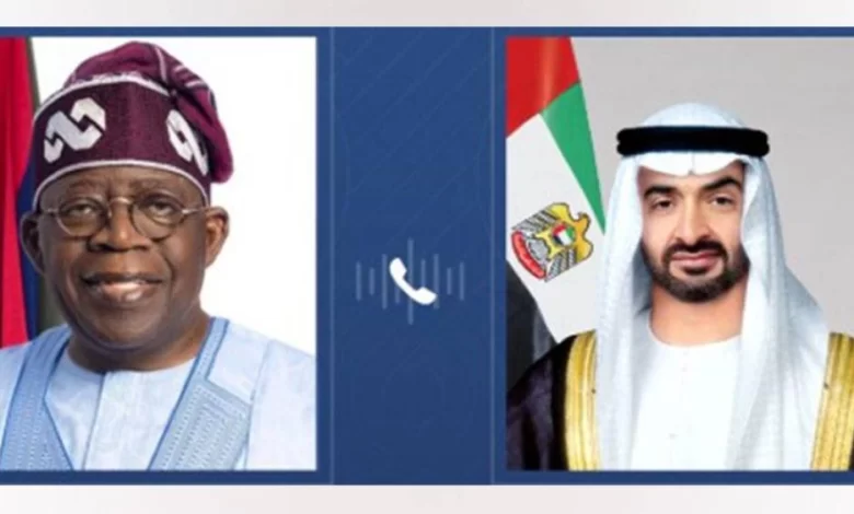 تلقى صاحب السمو الشيخ محمد بن زايد آل نهيان، رئيس الدولة «حفظه الله»، اليوم اتصالاً هاتفياً من بولا أحمد تينوبو، رئيس جمهورية نيجيريا الاتحادية، بحثا خلاله تطوير مسارات التعاون في مختلف المجالات، خاصة الاقتصادية والاستثمارية والتنموية والاستدامة وغيرها من الجوانب التي تخدم جهود التنمية في البلدين، مؤكدين حرصهما على مواصلة تعزيز العمل المشترك بين البلدين بما يعود بالخير والنماء على شعبيهما.