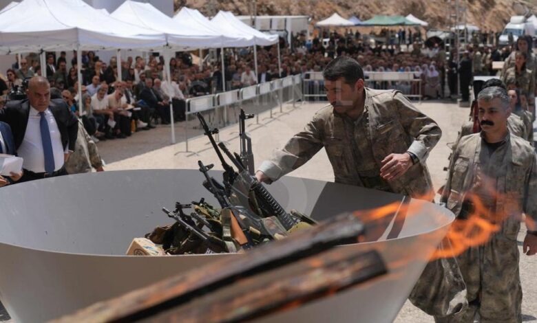 أحرق العشرات من مسلحي حزب العمال الكردستاني، أسلحتهم في المراجل، اليوم الجمعة، مع بدء عملية نزع السلاح إيذانا بانطلاق مرحلة السلام بعد أكثر من 4 عقود من الصراع المسلح مع تركيا.