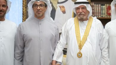 منصور بن زايد يكرم أحمد خليفة السويدي بوسام الإمارات للثقافة والإبداع تقديراً لمسيرته الوطنية والثقافية
