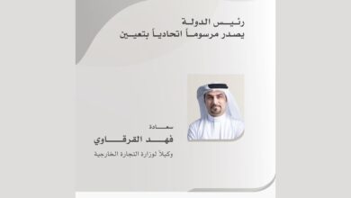 رئيس الدولة يصدر مرسوما اتحاديا بتعيين فهد القرقاوي وكيلا لوزارة التجارة الخارجية