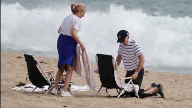 رُصد الرئيس الأمريكي السابق جو بايدن وهو يواجه صعوبة في نصب كرسي شاطئ يوم الخميس، قبل أن يسترخي تحت أشعة…